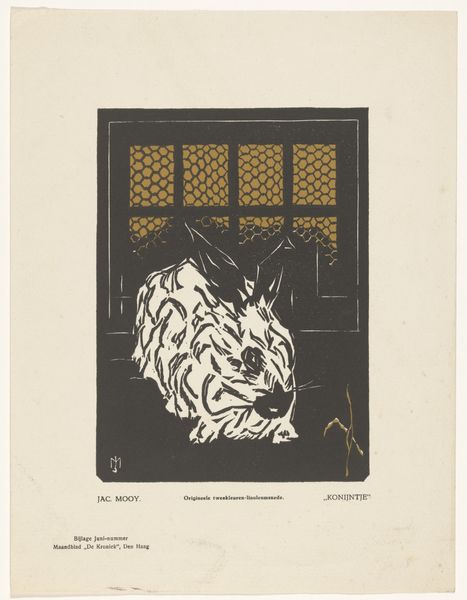 Patricq Kroon made this drawing, "Russische beer," with ink and opaque watercolor on paper. Look at how the artist uses simple hatching and cross-hatching to build up the bear's form, it's all about the layering of marks. The materiality here is spare but effective. The opaque watercolor gives the bear a flat, graphic quality, while the ink provides sharp contrasts. Notice how the artist uses the white of the paper to suggest volume and light, especially in the bear's fur. The limited palette—mostly black, white, and a touch of blue—adds to the drawing's stark, almost urgent feel. Take a look at the way the ink bleeds slightly into the paper, giving the lines a soft, fuzzy edge. It reminds me of Käthe Kollwitz's prints, with their similar emphasis on expressive line and social commentary. Ultimately, the drawing leaves us with a sense of unsettled tension and political intrigue.