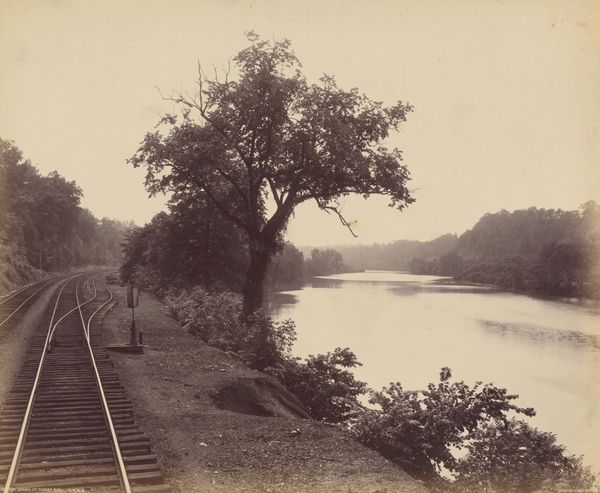 Editor: Here we have an incredible gelatin-silver print, a photograph by Heinrich Ernst & Co, taken sometime between 1890 and 1900. It's titled "Gezicht op de Sandelbrug in de Wampoe rivier, Tandjong Poera, Langkat Sumatra"— "View of the Sandel Bridge on the Wampoe River..." It's a hazy, almost dreamlike image, really serene. What do you see in it? Curator: Ah, yes, what a wonderful, quiet photograph. The way the bridge spans the water, mirroring the sky's opaqueness, makes me feel like I'm stepping into a different world. It whispers of humid mornings, of the gentle lapping of water against the stilted houses. And, you know, these colonial-era photographs... They always make me wonder about the photographer's perspective. Were they really capturing an objective reality, or framing a world for a European audience? Editor: That’s a great point! The perspective feels a bit detached, doesn’t it? Like we are viewing a landscape, not necessarily interacting with it. Do you think that ties into the orientalist style? Curator: Absolutely. This controlled gaze, this framing of the "exotic," was very much part of the orientalist project. But isn’t it also beautiful in its way? I can almost feel the air in my lungs and the temperature of the river with the picture. The photograph really captures this incredible time. Editor: I definitely see it now. The bridge seems more than just a structure, it’s a kind of… threshold. Thanks for helping me look at it with fresh eyes! Curator: My pleasure. Every artwork, every photograph is really a gateway to a different reality. If we're lucky, we come out of it seeing our own world a little bit differently.