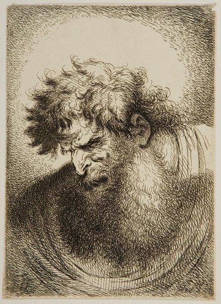 Willem Panneels created this drawing, titled ‘Satyrshoved’, using graphite. Panneels was active in the 17th century, a period marked by the rise of the Baroque style and significant social and political upheaval across Europe. The drawing depicts the head of a satyr, a mythological creature associated with revelry and wildness. Satyrs are typically male and known for their unrestrained behavior. Here, the figure's furrowed brow and contorted features evoke a sense of intense emotion, perhaps anger or pain. The lines are bold and expressive, capturing a raw, visceral quality. Historically, representations of satyrs have served as vehicles for exploring themes of sexuality, freedom, and the primal aspects of human nature. Panneels' portrayal seems to grapple with these themes, inviting viewers to confront the complexities of desire and instinct. It prompts questions about how we navigate the boundaries between civilization and our more base impulses, and ultimately, how we give form to the uninhibited parts of ourselves.