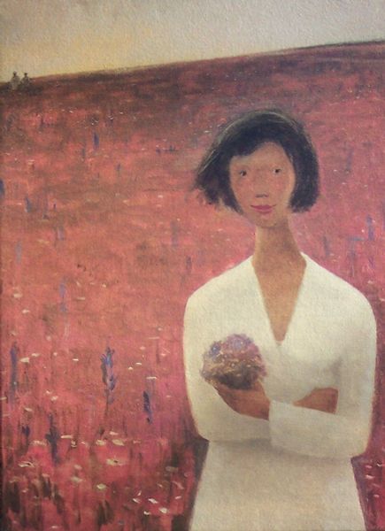 Jean Paul Lemieux created Julie et l'univers using traditional techniques of oil paint on canvas. The work's appearance is deeply influenced by the artist's handling of the paint itself. The material's inherent qualities come forward by building up thin layers of color, achieving a flat, almost dreamlike quality to the vast pictorial space, contrasting with the highly textural quality of the yellow coat. The brushstrokes give a sense of depth, imbuing the artwork with a contemplative atmosphere. Lemieux's engagement with the traditional techniques challenges conventions, inviting viewers to reconsider the boundary between fine art and the more 'earthy' realms of craft and design. It is through his labor-intensive artistic process that Lemieux transforms simple materials into something that resonates with the modern viewer.