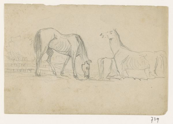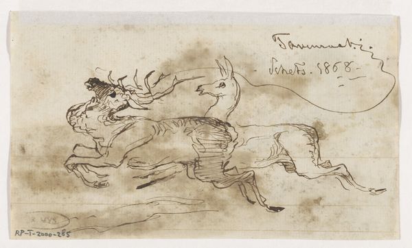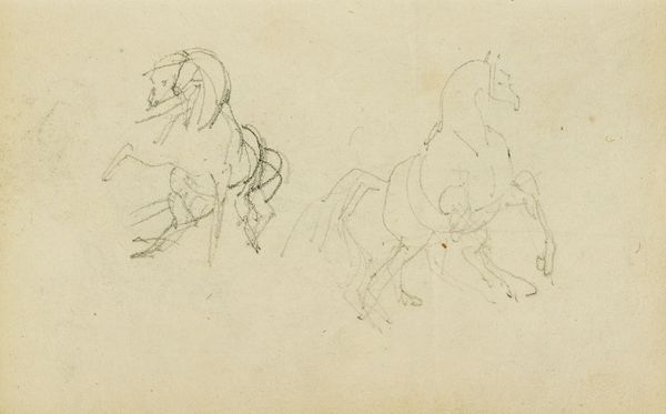 Editor: This is “Triumph of Neptune,” a drawing made with ink on paper, dating sometime between 1641 and 1709. It's an intriguing sketch. The lines are so minimal, yet they convey such dynamic movement. What do you see in this piece, from a formalist perspective? Curator: Primarily, I observe the interplay of line and form. Note the artist’s strategic use of contour lines to define Neptune’s figure and the horses, creating a sense of depth and volume despite the absence of shading. The composition, while seemingly fragmented, directs the viewer's eye in a circular path, enhancing the sensation of motion. Editor: I see that now, the circular motion, especially with how the figures are positioned. But do you think the sketch-like quality diminishes its impact, since it feels incomplete? Curator: Not at all. The incompleteness reveals the artist's process, offering insights into their artistic decisions. Observe the variation in line weight—thick lines emphasize key contours, while thinner lines suggest secondary forms, contributing to a hierarchical structure within the composition. Do you notice how the negative space plays a crucial role in defining the figures, perhaps even more than the ink itself? Editor: Yes, I see how the white space defines the forms and adds to the overall sense of lightness and speed. It makes the whole scene feel less dense. Curator: Exactly. Furthermore, the use of line exemplifies the Baroque style, embracing dynamism and emotional intensity. Editor: That’s a helpful reminder. It’s fascinating how much one can analyze focusing just on the elements and their relations. Thanks. Curator: Indeed, a close look at the visual components often unveils deeper meanings and artistic intent. Thank you.