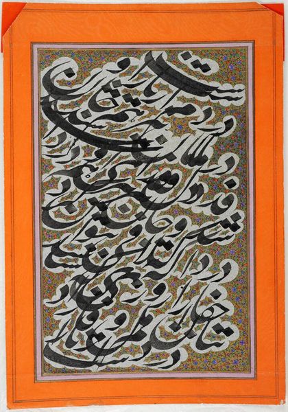 Curator: We’re looking at a "Panel of Nasta'liq Calligraphy" here at the Met, dating roughly from 1625 to 1675. The piece, attributed to Sayyid Amir 'Ali, is rendered in ink and mixed media on paper. Editor: Oh, wow, it looks like flowing water, but holding the secrets to another world, or perhaps multiple dimensions—so elegant! There is so much peace here, too. I wonder what it actually means! Curator: This is an example of Nasta’liq, a highly influential calligraphy style used primarily in Persianate societies. Its development is closely tied to the cultural and political spheres of the time. The script, the layout, and even the paper's marbling all point towards an engagement with Persian aesthetics and philosophical traditions. The writing has incredible balance. Editor: Absolutely, and look at the negative space! It feels like a breath held within each swirl. What story do you imagine the artist wanted to tell beyond pure communication? Is there symbolism hidden within these shapes and compositions that goes beyond legibility and words? It almost speaks on a higher plane. Curator: Some interpret this art as an expression of mystical thought; some emphasize that the letters themselves become the vehicle for spiritual ascension, as Islamic art favors symbolic representations over the explicit depiction of divine forms. Moreover, the placement and the density of the writing seem purposeful. This placement would surely add nuance. Editor: Right? This calligraphy transcends simple utility; it invites contemplation! If I had this piece at home, I would stare at it all day! Do we know what specific passage this calligrapher was rendering or illuminating through art, like his brush became the sun's rays for enlightenment? It must have something very powerful within the work! Curator: Unfortunately, we lack the knowledge to provide a specific passage; however, it’s quite a visual feast that mirrors a deep-seated love and reverence for language, doesn't it? Editor: Yes, it is! I'm totally leaving with more questions than answers—the best kind of art. Thanks! Curator: Indeed. It compels us to consider how different cultures interact through artistry.