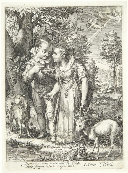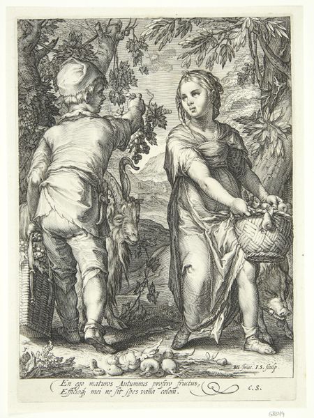 This engraving, Summer, was made by Jan Saenredam. Here, summer is embodied by figures amidst a bountiful agricultural scene. Note the wreaths of wheat adorning their heads, symbols of fertility and harvest. These crowns echo ancient rites, evoking Ceres, the Roman goddess of agriculture, whose garland signifies the earth's generosity. Such symbolism has deep roots. The wreath, or crown, motif appears across epochs, from laurel wreaths of victorious Greeks to the haloed saints of Christian art. Its significance shifts with context, yet it remains a potent emblem of honor, divinity, and seasonal cycles. Consider the sun’s halo in religious iconography; its circular form mirrors the wreath, both radiating power and transcendence. These recurring symbols speak to our collective memory, revealing humanity’s enduring fascination with nature’s rhythms and the archetypal narratives that bind us. The emotional resonance of these emblems engages us, connecting to primal notions of life, death, and renewal.