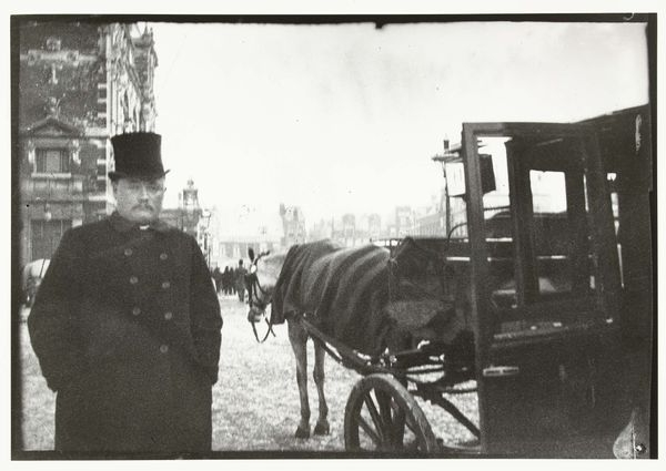 John Thomson created this photograph, Strawberries. All Ripe! All Ripe!, using a Woodburytype process. Its sepia tones and composition create a snapshot of Victorian street life, evoking a sense of stillness and social observation. The photograph is structured around a cart filled with strawberries, flanked by two figures. Thomson contrasts the vendor, a woman standing with dignity, against the young boy leaning against the cart, his hand to his face. Behind them, the rigid geometry of terraced houses provides a stark backdrop, emphasizing the subjects' transient presence within the urban landscape. The formal arrangement invites us to consider the social dynamics at play, highlighting the roles and realities of street vendors in Victorian London. Thomson’s choice of the Woodburytype process, known for its tonal range, imbues the scene with a rich texture. Through its formal elements, this photograph captures a moment of everyday life, offering a nuanced commentary on labor and class. The composition and tonal range invite ongoing interpretation.