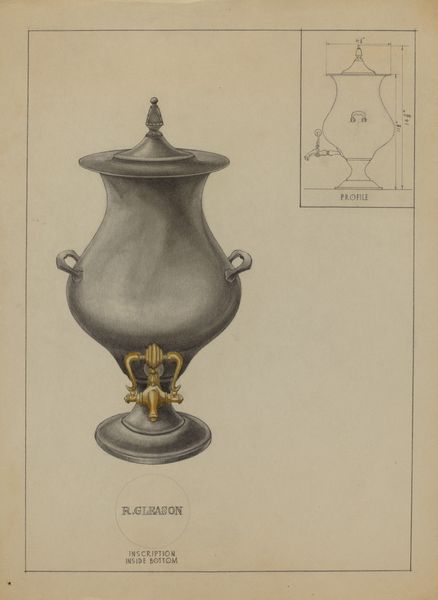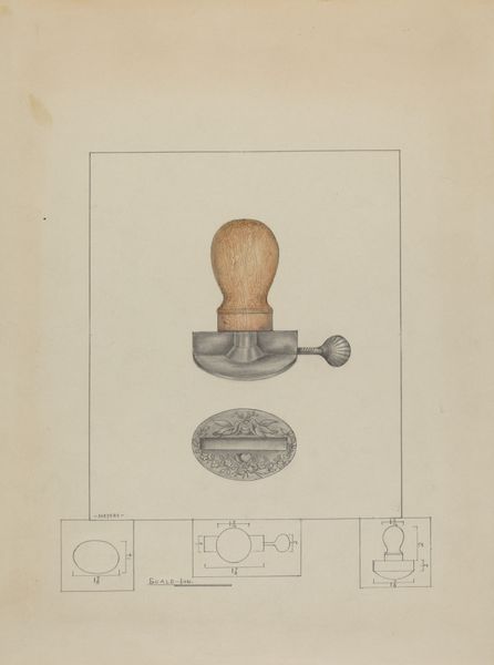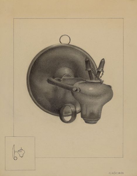 Editor: This is "Wall Sconce," a pencil drawing by Francis Law Durand, made sometime between 1935 and 1942. It’s interesting, almost like a technical drawing, but the shapes remind me of older sconces you see in castles or historic buildings. What jumps out at you? Curator: What I see is Durand meticulously documenting not just a light fixture, but a symbolic vessel. Note the elongated, almost teardrop shape surrounding the light itself. Doesn’t that recall reliquaries that hold sacred objects? Light, often representing enlightenment or divine presence, is literally enshrined here. Editor: So you're saying it's more than just a functional object; it carries spiritual weight? Curator: Precisely. Consider the geometric details within the light. The radiating lines, the tiered structure. They echo the visual language of mandalas, acting as miniature universes that evoke introspection. Is the light itself a stand-in for something larger, something holy perhaps? Think about how light and shadow function in places of worship. Editor: That’s a fascinating interpretation. I hadn't thought about the connection to religious symbols. So the placement, too – on a wall – could be significant? Curator: Walls delineate space, they’re boundaries. To affix this 'sacred' light to a wall transforms the space it illuminates. It’s no longer just a room, but a charged environment, imbued with whatever symbolic meaning we ascribe to that light. Is it for knowledge? Illumination? Perhaps both? The wall sconce becomes a point of focus for both everyday life and spiritual contemplation. Editor: I see what you mean. Now I am questioning its everyday usability! That changes my initial impression. I will be thinking about how this idea evolved. Thanks so much. Curator: Indeed! It prompts reflection on how we use symbolic forms every day, even unconsciously. And with these kinds of close readings, we create cultural memory and continuity for generations.