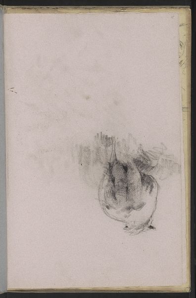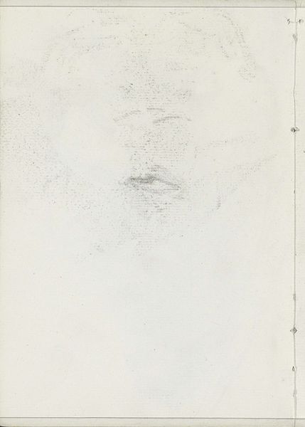 Editor: This is "Studie" by George Hendrik Breitner, around the 1880s. It’s a graphite drawing on paper, and it’s currently held in the Rijksmuseum. There’s something incredibly stark and elemental about this work. What do you see in this piece? Curator: What strikes me immediately is the way Breitner uses minimal form to convey a monumental subject, almost like a fragment of a dreamscape. Look at the boldness of the graphite against the bare paper, almost brutal in its directness. It echoes the symbolist movement of the late 19th century, using visible forms to represent invisible, deeper meanings. Does it remind you of anything you’ve seen? Editor: It has the kind of abstracted landscape I've seen in some East Asian scroll paintings… But, this also feels like something is emerging or collapsing... Curator: Precisely. The drawing, though unfinished, pulses with symbolic potential. Consider the use of stark black against the void. The contrast symbolizes light and darkness, good and evil, the conscious and the unconscious. The ambiguity is the point, inviting our own projections and interpretations. How does the medium contribute? Editor: The medium seems like a deliberate choice; it isn't precious or trying to be. Graphite is very raw, almost like cave paintings. Curator: A keen observation. The primal nature of graphite strengthens its tie to fundamental aspects of the human experience. It reminds us that the study of forms goes hand-in-hand with the forms of thought itself. Editor: This work definitely underscores the potency found within even the most rudimentary visual language. Curator: Indeed, and it reflects how artists throughout history have turned to basic materials to express complex realities, making art a continuous symbolic dialogue across generations.