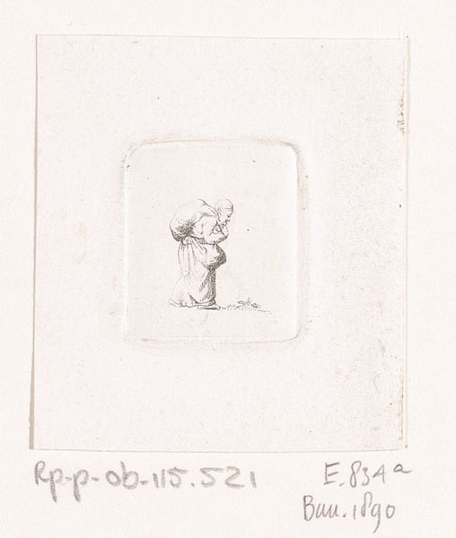 Curator: This delicate drawing is by Daniel Nikolaus Chodowiecki. Titled "Vluchtende man met mand," or "Fleeing man with basket," it dates to 1796. The artwork, rendered in ink on paper, resides here at the Rijksmuseum. Editor: My first impression is one of precariousness. There’s such a nervous energy in the line work, it really speaks to the man’s burden, visible in how he’s angled his entire body forward. It's incredibly compelling for such a small piece. Curator: Indeed. Chodowiecki created this drawing within a charged socio-political landscape. The French Revolution's ideals had spread, yet its Reign of Terror instilled fear across Europe. Consider how that might resonate in an image of a fleeing figure. Is he fleeing political persecution or perhaps something else? Editor: I see your point. Looking closer at the material realities of this image, I think it's interesting how Chodowiecki employs the delicate ink lines to evoke movement and perhaps also uncertainty. Notice how the basket's contents are implied rather than clearly defined. Curator: Precisely! This imprecision adds to the work's ambiguity. It could symbolize the fleeting nature of life or even the uncertainty of the future that was weighing heavily on society at the time. He uses ink wash techniques common in that era to great expressive effect, no doubt about it. Editor: Speaking of that basket: what might it be made of? Wicker, perhaps? These humble details pull us into the character’s potential situation and labor; his life seems entirely dependent on it. The very means of depicting it suggests labor! The paper itself, its cost and production—the artwork becomes so layered. Curator: That’s a great connection, drawing parallels between material production and the scene’s broader historical meaning. As a document, "Vluchtende man met mand" encapsulates an era marked by both revolutionary hopes and existential dread. Editor: Agreed. Analyzing the material, Chodowiecki used his labor to mirror his subject, reflecting the human cost within larger societal shifts and, importantly, the artistic tradition. I hadn’t initially considered that! Curator: Considering all, it reveals much more upon reflection than its humble presentation initially suggests.
