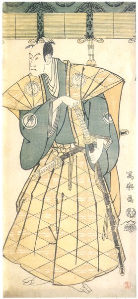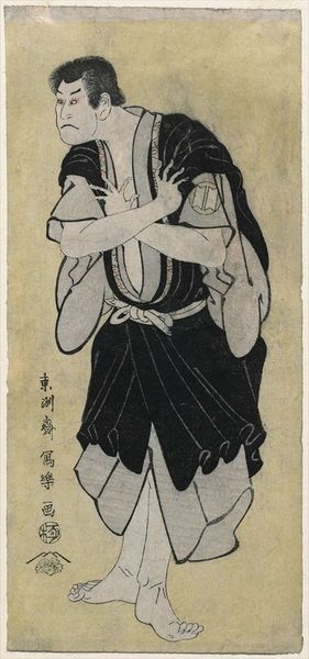 This print of Osagawa Tsuneyo II as Okinu, wife of Chōemon, was created by Tōshūsai Sharaku, most likely in 1794, using woodblock printing. The making of Ukiyo-e prints like this one involved multiple artisans. First, the artist would create a design. Then, a block cutter would carve the image into woodblocks, using a variety of specialized tools. Finally, a printer would apply ink to the blocks and transfer the image to paper. Each color required a separate block, demanding precise registration. The social significance lies in the way Ukiyo-e prints brought images of popular culture to a wider audience. Kabuki actors like Osagawa Tsuneyo II were celebrities, and these prints allowed fans to own a piece of that world. The process, while demanding skill, was relatively inexpensive, making these artworks accessible to the rising merchant class. Considering materials, making, and context reveals the democratization of art inherent in this piece. It challenges distinctions between high art and craft, placing value on popular culture and the skilled labor involved in its production.