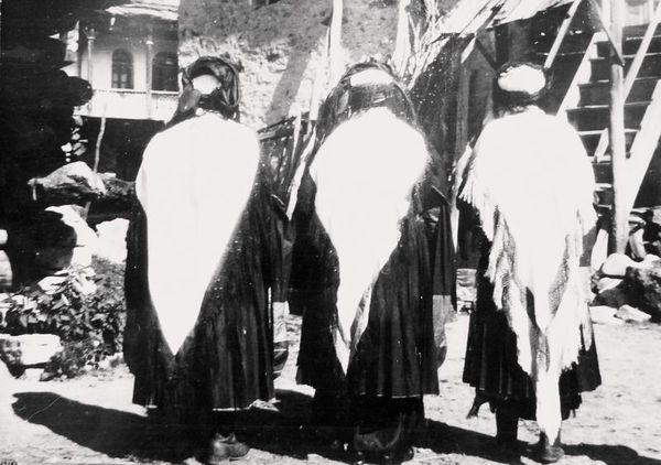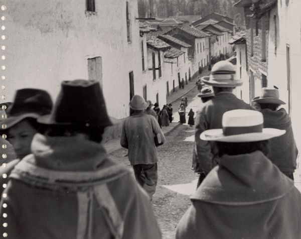 This is Robert Frank's photograph, "Procession/Valencia." It captures a somber mood through a study in contrasts and formal composition. The women are dressed in dark clothing, set against the muted, earthy tones of the old wall and cobblestone street. This stark contrast emphasizes their figures and their solemn march. Frank uses the line of the wall as a compositional anchor, reinforcing the linear movement of the procession. The texture of the aged wall, with its uneven surface and markings, creates a rich backdrop that accentuates the women’s presence. Structurally, the photograph employs a horizontal format, drawing the eye along the line of the procession. This simple yet powerful arrangement conveys a sense of rhythm and continuity. The photograph’s form enhances its content, suggesting themes of tradition, mourning, and the passage of time. Ultimately, Frank's work invites us to consider how formal elements can converge to create a profound and enduring narrative about cultural identity and the human condition.