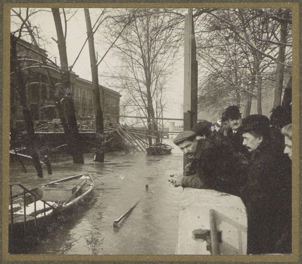 This is an undated photograph by G. Dangereux, of boats along a quay during the flooding of Paris. It's incredible how the sepia tones wash over everything, creating a sense of timelessness, even as the scene depicts a moment of crisis. The texture of the water is smooth, almost like glass, yet you know it's turbulent underneath. Look at the way the light catches the edges of the boats, those hard reflections cutting against the soft gloom of the water. It is like a metaphor for the city itself. But it's the composition that really grabs me. The juxtaposition of the sturdy buildings on the left with the chaos of the boats on the right. The rigid architecture versus the fluidity of the water. It reminds me a bit of Eugène Atget’s photographs of Paris, a similar focus on capturing the essence of the city through its architecture and atmosphere.