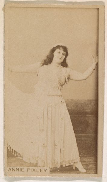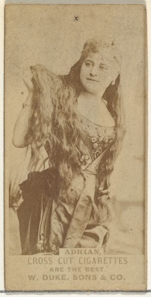 This small photograph of Mlle. Berny was produced in the United States by W. Duke, Sons & Co. around the turn of the 20th century, as part of a series of collectible cards to promote Duke Cigarettes. The image presents a performer in costume, referencing an orientalist fantasy, popular at the time for both theatrical productions and advertising. The company aimed to associate its product with the allure of exoticism and the glamour of the stage. Through their wide distribution, these cards offer insights into the cultural values and aspirations of the period. Understanding this image requires us to look at the history of advertising, popular entertainment, and the cultural phenomenon of orientalism. By looking at newspaper archives, theatrical programs, and company records, we can better understand the social conditions that shaped its production and reception. The meaning of this art is contingent on its social and institutional context.