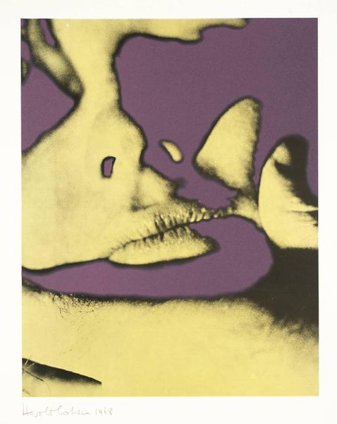 Editor: Here we have an untitled print by Harold Cohen, dating to 1968. The image is striking with its use of red and blue tones. What do you make of the subject matter and Cohen’s artistic choices? Curator: Well, given the socio-political climate of 1968, this print speaks volumes about the politics of representation. The vibrant colors and distorted form suggest a society grappling with upheaval. Can you see how the abstraction challenges traditional portraiture? Editor: I see how it breaks from tradition. So, the style itself is a statement? Curator: Precisely. By distorting the figure, Cohen perhaps critiques the idealized images propagated by the media. It encourages us to question what we see and its underlying political implications. Editor: That’s a perspective I hadn’t considered. The print feels much more charged now. Curator: Art often reflects and refracts the world around it. Examining its historical context illuminates its deeper meanings.