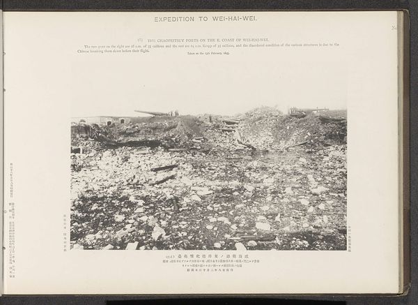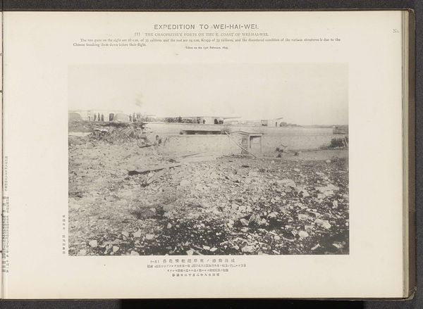 This black and white photograph, taken by the Ordnance Survey Office, captures a portion of the Lungmeaoutsuy forts on the east coast of Wei-Hai-Wei, along with the Japanese torpedo-boat No. 22, run aground. The image is a potent visual document reflecting the colonial tensions of the late 19th century. Wei-Hai-Wei, a strategic port in China, became a site of contestation, embodying the struggles over territory and power. The presence of a grounded Japanese torpedo-boat suggests a moment of vulnerability amidst imperial ambition. The photograph's stark composition, with its focus on military infrastructure and stranded vessel, invites reflection on themes of dominance, vulnerability, and the human cost of conflict. It serves as a reminder of the complex historical and geopolitical forces that have shaped our world, and the human dramas that unfold within these larger narratives.