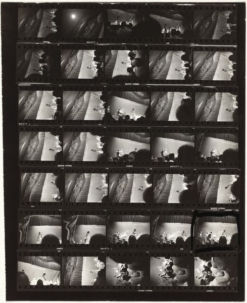 This is Robert Frank's 'Andrea as infant III', a contact sheet of black and white photographs. Seeing all of these little frames together gives us the feeling of process, of Frank trying to find the right shot. There's a kind of accidental beauty in these test strips, like the artist is thinking out loud. The starkness of the black and white focuses our attention on the subject, in this case a baby, but also on the formal qualities of the image itself. I see the way Frank uses light and shadow, creating deep contrasts that give the image a kind of raw, unfiltered feel. These contact sheets remind me of the work of artists like Gerhard Richter who blurred the lines between photography and painting, using the camera as a tool for experimentation. Like Richter, Frank's work invites us to embrace ambiguity and multiple interpretations.