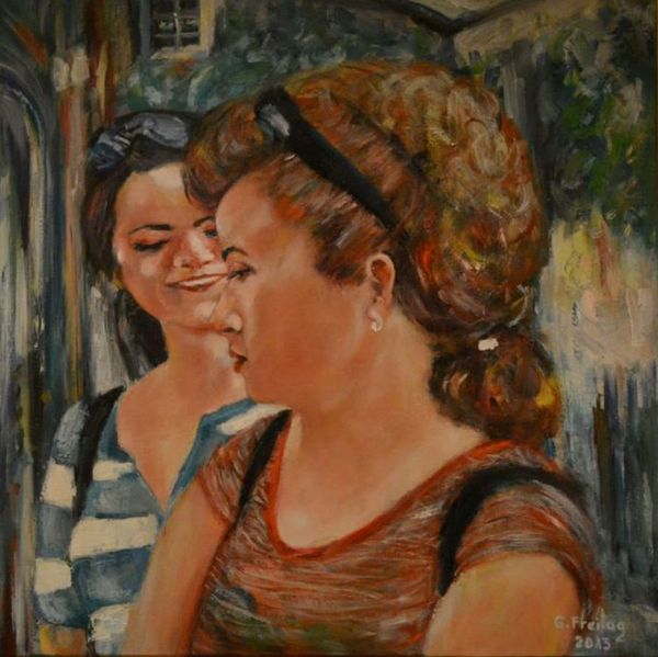 Leo Putz, born in 1869, painted "Lisl und Buberl" with what looks like oil on canvas, capturing this intimate scene. The colors are a bit muted, but then again, maybe that's the light or the mood he was going for, who knows? That’s the fun, it’s all process, right? The paint looks like it was applied wet-on-wet, so those brushstrokes blend together. Look at the girl on the right, how the red of her top sort of melts into the background of the chair. It's all about touch, and the immediacy of the paint itself. I really love how the faces have that slightly unfinished look that lends them a modern sensibility. Makes me think of Paula Modersohn-Becker, another artist interested in the simple beauty of everyday scenes. You know, art isn't just about perfect representations; it’s about feeling, about what happens when the artist and the paint and the subject all come together in this messy, beautiful conversation.