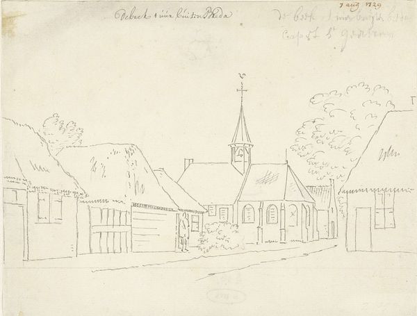 Curator: What a delicate pencil drawing. There's a certain quiet to it, a stillness despite all the geometric forms defining this building. Editor: Indeed. This is "Het huis Borstelle te Oosterhout" – Borstelle House in Oosterhout. It's a drawing by Cornelis Pronk, likely created between 1726 and 1729, rendered in pencil on paper. A fine example of Dutch Golden Age landscape art, now held at the Rijksmuseum. Curator: Pronk clearly focused on capturing the architectural details. I wonder, what does Borstelle House *represent* beyond just being a building? Is there something deeper here? The rigid gate is prominently displayed at the front and center of the image. Editor: I'd argue the house itself symbolizes the aspirations of the Dutch elite during that era. The geometric architecture—carefully mapped out here—speaks to order, control, and prosperity achieved through trade and expanding influence. Note how the house is framed; even the natural surroundings, the trees, appear deliberately positioned to highlight this structure. Curator: I find it telling how Pronk uses the stark linearity of the lines that form the gate and architectural details to suggest this controlled prosperity you mention. Almost a celebration of civic architecture and what it represents within the Republic. This precision serves as both description and declaration. Did these precise and symmetrical designs affect its cultural status and how architecture was viewed during the Dutch Golden Age? Editor: Undeniably so. There was immense pride associated with these structured environments, reflected in countless paintings and drawings. This architectural ideal communicated power, good governance, and societal harmony—at least, that's the story the elite wished to convey through these carefully constructed images. Curator: And one disseminated through art itself! It's a fascinating insight into how images can reflect, and also actively shape, societal values. The symbolism isn't just within the walls of Borstelle House; it's etched into the very act of creating and viewing this image. Editor: Absolutely. Every stroke, every calculated angle is laden with meaning and reflects a certain image that the Dutch wished to disseminate out to the rest of the world. Curator: Thinking about this drawing, it’s interesting to consider its presence here, in the Rijksmuseum. This setting allows us to appreciate Pronk's precise work, while also pondering the broader social narrative woven into its lines. Editor: And for me, contemplating the symbols embedded within these carefully structured architectural portraits continues to be profoundly illuminating, as it serves as a reflection of the society's deeper values and anxieties.