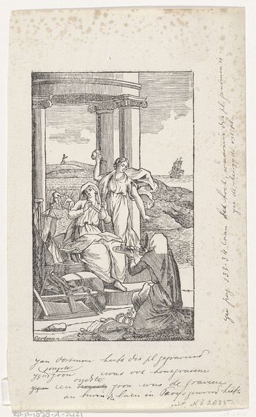 This frontispiece for Kornelis de Vogel's "Catechism of Stadtholdership," made in 1786 by an anonymous artist, presents a symbolic scene steeped in classical imagery. We observe a classical building illuminated by divine rays, toward which figures, perhaps Muses, proceed. The temple, a classical structure, is not merely architectural; it embodies the ideals of civic virtue and order harking back to ancient Greece and Rome, signaling a connection to historical precedents of governance. This harking back is what I call the 'survival of antiquity'. The stadtholder stands before it, and we are reminded of similar figures in Roman imperial portraiture adopting the pose of authority and legitimacy. Consider the Muses, who, in their partially draped state, appear to be offering laurel wreaths to the figure. This gesture, echoed across centuries from ancient rituals of honor to Renaissance celebrations of genius, carries an emotional weight that is hard to ignore. These motifs, gestures, and architectural symbols evoke a collective memory, tapping into subconscious processes and engaging viewers on a deep, almost instinctual level. The cyclical progression of symbols reminds us that history is never truly past; it resurfaces, evolves, and takes on new meanings.