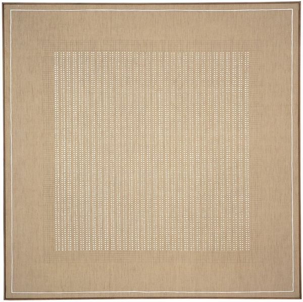 Luciano Bartolini created this artwork titled 'Rainbow', using mixed media on tracing paper. At first glance, the composition presents itself as a study in geometric abstraction. It is dominated by a grid-like structure which imposes a sense of order and rationality. Four squares are defined by vertical and horizontal bands. The restrained color palette contributes to a contemplative mood, inviting closer inspection. Upon closer viewing, the texture of the tracing paper introduces an element of chance. The semi-transparent nature of the paper allows subtle variations in tone and texture to emerge. This interplay between intention and accident destabilizes any fixed meaning, opening up possibilities for interpretation. In essence, ‘Rainbow’ becomes more than a geometrical exercise. It's an investigation into how the formal aspects of art intersect with philosophical ideas about perception and meaning. By carefully orchestrating elements such as line, surface and structure, the artwork offers a window into the complex relationships between art, language, and the world around us.