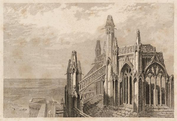 Thomas Shotter Boys created this watercolor and graphite rendering of La Sainte Chapelle in Paris sometime in the 19th century. Considered through the lens of labor and social hierarchy, Boys' depiction of the Parisian landmark subtly layers in the identities of those who upheld its grandeur. We see stone blocks and scaffolding at the forefront and can imagine that the construction site was a hive of activity, filled with workers whose efforts enabled the chapel's presence. Here, Boys doesn't shy away from depicting the working class, and the economic stratification inherent in the creation and maintenance of such iconic structures. While Boys acknowledges the labor involved in preserving historical monuments, he still romanticizes the chapel as a beacon of French identity. This tension reflects the complex ways in which societies often grapple with their relationship to history and the labor that underpins them.