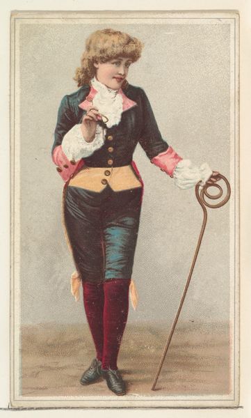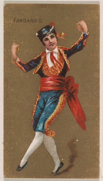 This is "Fandango," a trade card printed by Kinney Bros., circa 1869. Here, the dancer’s poised gesture and elaborate costume – complete with sash, bolero jacket, and castanets – speak of the Fandango's passionate nature. The Fandango, a courtship dance, is laden with symbolism. Its roots trace back to ancient Iberia, yet echoes resonate in the art of the Minoans. Think of the bull-leaping frescoes of Knossos, the charged movements, the display of virility, and the dangerous dance of life. Consider the sash. It cinches the waist, emphasizing the dancer’s torso, mirroring the belts worn in ancient fertility rituals. The rapid footwork and rhythmic clapping of the castanets, are akin to the ecstatic movements seen in Dionysian rites. The dance, therefore, becomes a vessel. It carries primal human drives, a dance with life, death, and rebirth. These symbols resurface, evolve, and take on new meanings throughout history, a testament to the enduring power of cultural memory.