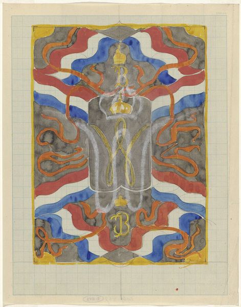 Carel Adolph Lion Cachet made this watercolor design featuring a crowned 'W' and national colors. It presents a fascinating insight into Dutch national identity, likely created during a period of significant social or political change. The image combines royal symbolism with national colors, suggesting a message about the relationship between the monarchy and the people. Consider the historical context: Was this design for a specific event, like a royal celebration or a moment of national crisis? By looking into the political and social climate of the time, we might discover how Cachet's design was intended to shape public sentiment or reinforce national unity. Was he working for a specific institution at the time? How might that have influenced his design choices? To fully understand the artwork, we can consult historical archives, political publications, and even museum records. These resources can provide a fuller understanding of the cultural and institutional forces at play during its creation.