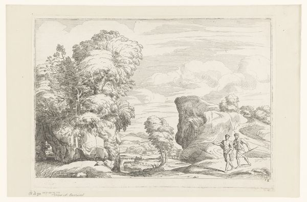 This etching of a praying pilgrim was made by Reinierus Albertus Ludovicus baron van Isendoorn à Blois in the early 19th century. It’s fascinating to consider this image in relation to the religious and social context of the Netherlands at the time. The figure of the pilgrim, kneeling in prayer, evokes a sense of personal piety and spiritual seeking. The Netherlands has historically been a place of religious diversity, but this image seems to represent a more conservative and traditional view of faith. The small scale of the etching suggests a personal, intimate object, perhaps intended for private contemplation. It reflects the tastes of the Dutch aristocracy, who are known for their refined sensibilities and collecting habits. To fully understand this artwork, we might look to historical records of religious practices in the Netherlands, studies of aristocratic patronage, and the artist's other works. Through this, we begin to understand the role of art in shaping and reflecting social values.