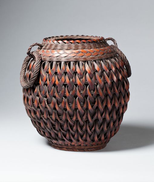 Tanabe Chikuunsai crafted this woven banana leaf flower basket sometime before 1937. Look closely at the surface of the basket, the way the light plays across the interwoven strands, and you begin to get a sense of the artist’s process. What strikes me is the tension between the basket’s functionality and its intricate detailing. It's like the artist is playing with the very idea of usefulness. There is a real sense of energy in the push and pull of weaving, a dance of hands and material. See how the darker shades of the banana leaf create a kind of shadow play, accentuating the basket's form. Chikuunsai wasn't just making a basket; he was engaged in a conversation with tradition, pushing the boundaries of what a functional object could be. It reminds me of the early work of Anni Albers, where weaving becomes a language in itself. Ultimately, it's about seeing the world in a new way, appreciating the beauty in the everyday, and understanding that art can be found in the most unexpected places.