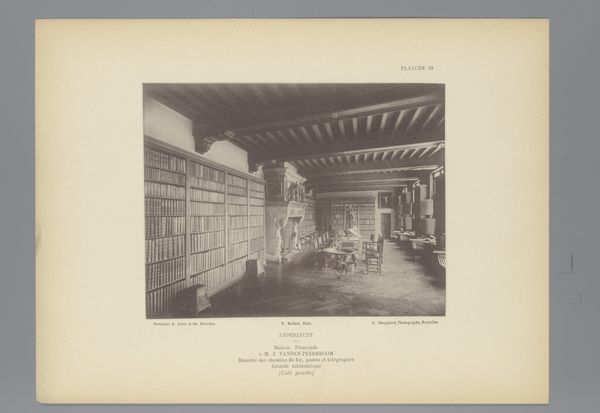 This photograph captures the study of J. vanden Peereboom in Anderlecht, Belgium, and was taken by G. Choppinet. Vanden Peereboom was a Minister of Roads, Posts, and Telegraphs. The study is an intimate reflection of Vanden Peereboom's identity and social standing. Bookcases line the walls, filled with leather-bound books – a symbol of knowledge, wealth and power. The solid wooden furniture and ornate detailing speak to a cultivated taste and a privileged existence. This room, described as his 'cabinet of work', suggests a space dedicated to intellectual pursuits and governance. Consider how access to such spaces and resources would have been largely confined to a specific class, reflecting the social hierarchies of the time. Spaces like these were vital in shaping both personal identity and influencing broader societal structures.
