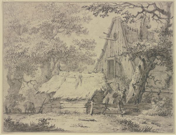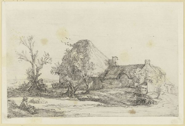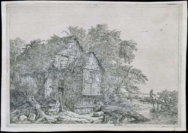 "Farm Courtyard" is an undated etching by François Boucher, a leading artist of the French Rococo. Boucher's work often celebrated idealized pastoral scenes that were consumed by the aristocratic elite. But, in this piece, there are also hints of the realities of rural life, which was often romanticized from afar. The etching depicts a dilapidated farmhouse surrounded by overgrown vegetation, giving us a glimpse into the lives of those who lived and worked on the land. Note the figures placed on the right of the image and the chickens in the farmyard; they give a sense of scale and life, suggesting a narrative of everyday existence. What kind of commentary is Boucher making here about the representation of class? This image asks us to reflect on the complexities inherent in representing rural life and the people who inhabit it.
