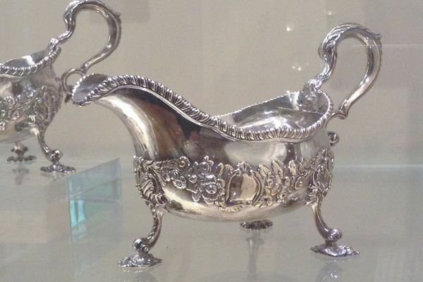 Curator: Here we have an exquisite tray created around 1904 by Paul Follot, currently held at the Minneapolis Institute of Art. The piece is crafted from silver, reflecting the elegance of the Art Nouveau style. Editor: It's so sleek, isn’t it? The shine is almost blinding! The curvilinear forms and floral motifs give off a feeling of restrained luxury and sophistication. It seems utterly impractical but visually captivating. Curator: Absolutely. Follot was a master of translating organic forms into refined, almost geometric shapes. Notice how the handles rise and arch like stylized plant stems, echoing the botanical theme embossed on the tray's surface. It’s not just decorative; the structure integrates function with pure aesthetic pleasure. Editor: That surface! You’ve got to wonder about the silversmith’s labor in achieving this level of detail and polish. Were these handmade or part of early mass production? How did that affect access to and consumption of such design in early 20th century France? Curator: Good questions. While exact production methods aren't documented in detail, pieces like these typically involve skilled artisans using specialized tools for hammering, chasing, and polishing the silver. Even if there were some early mass-production techniques, a level of individual handcrafting would have been integral to bring forth details. It blurs the boundaries of industry and fine craftsmanship we continue to find ourselves in a similar moment, even now. Editor: So, it's not just about its visual language, it is also an emblem of early modern craft labor and status. We must think about those unacknowledged makers who shaped this design vision. Curator: I agree. There is an intersection between art, labour and design we must constantly unpack, in this instance, revealing hidden historical context. The dialogue the “Tray” invites us to continue. Editor: It provokes one to rethink boundaries of where Art Nouveau started and where does functional silver craft stops.