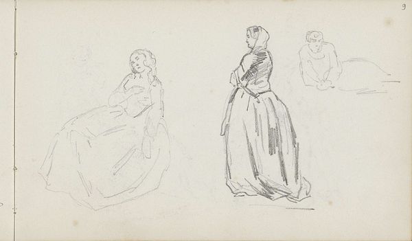 Johan Thomas Lundbye sketched these women in pen on paper, capturing domestic life through simple strokes. Notice the posture of the woman holding a child, the way she cradles the infant echoes countless Madonna images throughout art history. This archetypal mother-child bond transcends time; it speaks to the primal, nurturing instinct deeply embedded in our collective consciousness. Like the Egyptian goddess Isis with Horus, or the countless Byzantine icons of the Virgin, Lundbye captures a timeless image of protection and love. The slightly bent posture, the gentle curve of her arms, evoke a sense of tender watchfulness that engages viewers on a profound, subconscious level. This image, while simple, resonates with the weight of centuries, reminding us of the enduring power of maternal love as expressed through art, evolving yet perpetually present.