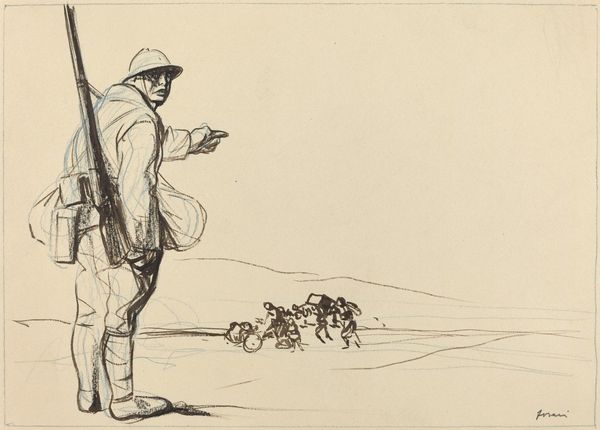 Théophile Alexandre Steinlen made this etching, La Ville Lointaine, sometime in the late 19th or early 20th century. It depicts a family of refugees encountering an itinerant worker. Steinlen was a Swiss-born French artist deeply engaged with social issues. He often contributed illustrations to socialist and anarchist journals. In this print, the figures' clothing and postures convey hardship. The distant city, the "ville lointaine" of the title, represents a destination and a hope, but also emphasizes their displacement. Consider the context of rapid industrialization and urbanization in France at this time. Many rural people migrated to cities in search of work, often facing poverty and discrimination. Steinlen's image reflects this social reality, critiquing the economic forces that uprooted families and created a class of marginalized workers. To understand this artwork further, look to period sources like newspapers, political pamphlets, and sociological studies of urban poverty. Steinlen's art invites us to reflect on the human cost of progress and the social role of art.