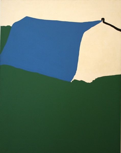 Curator: This is "White On Blue II," a screenprint made in 1969 by Adja Yunkers. What’s your immediate response? Editor: It feels...clean. Deceptively simple, almost aggressively so. That blue just *is*. The stark white almost bisecting it adds this jolt of, I don't know, a clean break? Curator: That sensation of cleanliness really resonates with the minimalist movement Yunkers was associated with. You have this unmodulated field of blue broken only by the negative space created by that meandering white form. The effect comes from the precision inherent to screenprinting. Editor: It's more complex than I first gave it credit for. It reminds me a bit of those Matisse cut-outs but reduced to a really basic design, even to the hard-edge painting of that era— where forms are pared back to pure shape and color. There's something cooly industrial, even pop-art-ish about it. It’s also intriguing how he titles it “White on Blue,” so focusing our attention to the figure-ground dynamic right off the bat. Curator: Right, and I think it reveals the paradox within movements like minimalism or color-field-painting. On the surface, it's a reductive gesture; Yunkers strips away all these traditional representational elements of painting. But look closer! Here is the artist exploring these relationships and forcing us to focus on what we see, while removing so-called extra noise. Yunkers, having fled war-torn Europe, always seemed preoccupied with light, even within abstraction. The high-key contrast surely creates an effect of illumination in the piece. Editor: You can almost read that meandering white slash as a streak of sunlight, I see that. So maybe simplicity isn't about stripping things *away,* but refining what is essential—that emotional hit of pure colour. Looking at this, you also can understand it in the socio-political moment—color, line, and form as things divorced from the weight of art history. What a breath of fresh air in 1969, right? Curator: Absolutely. What begins as a minimal statement becomes an opening for something expansive, in how we engage with art, with seeing. Editor: Indeed, even its deceptive bareness contains whole worlds within the tension between its blue expanse and singular stroke.