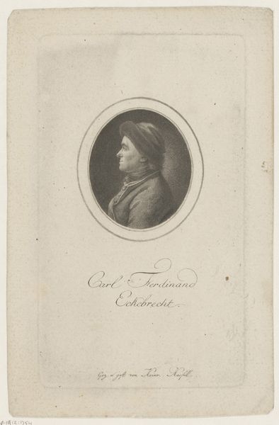 Christoph-Wilhelm Bock’s portrait of Jakob Daniel Burgschmiet captures the sitter in profile, rendered in fine lines, with subtle tonal variations, and encased in a circle that softens the overall effect. The textured application of ink creates a sense of depth and volume in the face and clothing. The circular frame around Burgschmiet isolates him, focusing attention on his individual features and conveying a sense of detachment. This compositional choice may reflect a broader intellectual interest in the self and individual identity, influenced by Enlightenment ideals. The portrait invites us to consider the interplay between representation and reality, questioning how an image constructs and conveys meaning about its subject. Consider the contrast between the geometric precision of the circle and the organic texture of the face. This juxtaposition isn’t merely decorative; it suggests a tension between rational order and natural form. The artist prompts us to think about the very act of representation and the ways in which it shapes our understanding of both art and the world.