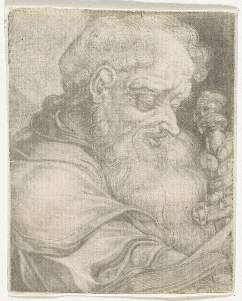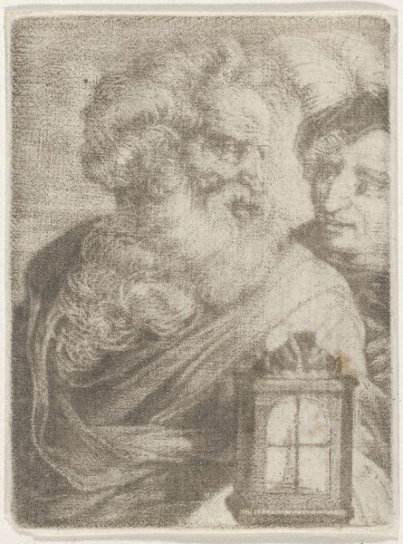 Editor: Here we have Adriaen van der Werff's etching, "Diogenes met de lantaarn," likely created between 1669 and 1722. The composition is quite striking, and it makes me think of the dichotomy of illumination and obscurity, emphasized through the subject, and its relation to shadow. What's your read of the symbolism inherent within this baroque print, especially when we consider its place within the social structure of its time? Curator: That's a astute initial interpretation. Diogenes, eternally seeking an honest man, holds the lantern, a powerful emblem within the social and political context of the Dutch Golden Age. It reflects the broader societal anxieties and philosophical questioning during that period. Etchings like these, accessible to a growing middle class, served as visual prompts for debate, critiquing the values, or lack thereof, within the Dutch Republic's burgeoning capitalist society. How does the figure's apparent lack of interaction influence this social commentary? Editor: It gives him a sense of loneliness, a kind of disconnect. Curator: Exactly. Diogenes stands apart, searching, highlighting a potential failure of social cohesion. It speaks volumes about the evolving role of art within society and how the medium was able to carry profound meaning in plain sight, and enter into dialogues around class and ethics. What did you notice about the treatment of the skin? Editor: It appears so very textured, detailed, lined with age. What does that bring into the conversation? Curator: It reinforces the timeless nature of the search for virtue in society. Van der Werff, through Diogenes, seems to be saying this struggle is perpetually etched into the human experience, a commentary for all ages, captured for wider consumption via printmaking techniques. Editor: That's really insightful. It reframes the image not just as a historical snapshot, but a continuing relevant conversation. Curator: Indeed. That constant search speaks volumes to this very day, not just of history, but humanity, society, and social relations.