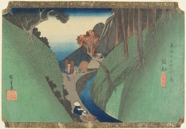 This woodblock print, made by Utagawa Hiroshige, depicts the landscape of Okabe, a post station along the Tōkaidō road. Notice the winding path, a symbol of life’s journey, threading through a vivid, stylized natural setting. The travelers, rendered with a delicate touch, evoke a sense of narrative and human presence amidst the grandeur of nature. The image calls to mind the "Tempesta" by Giorgione, where figures and nature are combined. Yet, where Giorgione captured a moment pregnant with unexpressed tension, Hiroshige’s travelers exude serenity and the comforting rhythm of the road. It’s as if the travelers and the natural elements are bound by a collective memory, each footstep echoing the countless journeys before. The subtle gradation of colours, the meticulous details—all evoke a deep, subconscious sense of continuity. The winding path and presence of travelers, therefore, is not merely a representation but a powerful motif that engages us on a primal level. A symbol that resurfaces in different eras, forever evolving and gathering new layers of meaning.