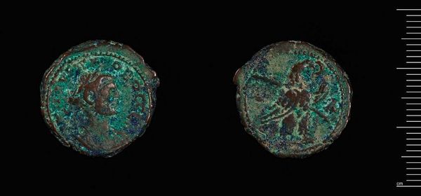 Curator: We're looking at a Tetradrachm of Alexandria under Probus, currently residing at the Harvard Art Museums. Editor: It has an incredible verdigris patina. The material presence is so strong. Curator: Indeed, the coin speaks volumes about the economic and political structure of the Roman Empire under Probus. Minted in Alexandria, it showcases Roman power expressed through local production. Editor: The process of striking these coins, the labor involved, and the base materials used tell a story of resource extraction and wealth distribution. It makes me consider the everyday use of this coin and how it facilitated both local and long-distance trade. Curator: Absolutely. The imagery itself, likely depicting Probus or a related symbol, reinforced imperial authority and communicated Roman values to the diverse population of Alexandria. Editor: There's something compelling about holding a small object that once held such transactional power. It's a tangible link to the labor and the economic systems of the past. Curator: It prompts us to consider the coin's journey – from the hands of the minters to the marketplace, shaping the lives of ordinary people in antiquity. Editor: It is a fascinating record of a society's values embedded in the material culture.