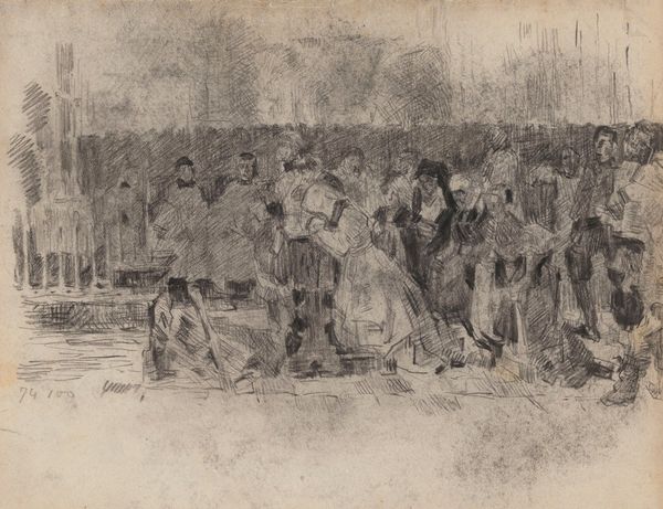 Here we see "The Plaza, Sunday Afternoon," a stone lithograph by Richard Harrison Crist. The tonal range is rich with grays and blacks, creating a scene that pulsates with life. The plaza is densely packed, a convergence of figures rendered with dynamic line work. Notice how Crist uses the lithographic medium to create a textured surface, enriching the visual experience of the viewer. The composition pulls you in, engaging you with its lively tableau of people. The figures form a complex pattern that activates the entire surface. Each line and shadow seems to speak to the broader cultural narratives embedded in the artwork. Crist captures the essence of a community gathering. The artist skillfully transforms a simple scene into an invitation to interpret the cultural and social dynamics at play. The arrangement of elements fosters ongoing dialogue about how we perceive and represent cultural scenes.