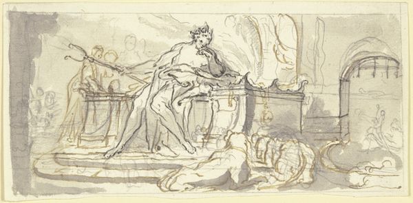 Editor: So this is "The Model," an ink drawing attributed to James Ensor, date unknown. There’s a figure drawing a statue of a nude figure. It looks almost like a snapshot of the artist in action, really informal. How do you interpret this work? Curator: This seemingly simple drawing actually opens up several avenues for exploration, especially if we consider Ensor's broader artistic and social context. Ensor often critiqued bourgeois society and its hypocrisies. The figure studying a nude sculpture invites us to reflect on the gaze itself. Who is allowed to look, and at whom or what? The academic setting, hinted at by the classical statue, traditionally excluded many, particularly women and people of color, from participating fully in the art world. Is Ensor acknowledging that inherent power dynamic here, or perhaps critiquing it? What do you think? Editor: That's a compelling point about the gaze. I hadn’t considered the power dynamics at play. It feels like he is part of the established, academic process without outwardly challenging it. Curator: Precisely. The loose, sketch-like quality, though, might suggest a subtle form of resistance against rigid academic conventions. Ink, as a medium, has its own history. And combined with the date on the bottom, 1931, this might hint to questions of what "modern" art can or should look like. How do we continue old traditions versus how we look forward and evolve them? Editor: So it’s like he's operating within the system, but maybe questioning its foundations through his style and subject matter? Curator: Exactly. By drawing attention to the act of observation and the historical constraints surrounding it, Ensor prompts us to critically examine the very institutions that shape our understanding of art and beauty. Editor: That makes me see the drawing in a completely new light. It’s more than just a study; it's a commentary. Curator: Absolutely. Art is never created in a vacuum. Understanding the historical and social context allows us to engage with the artwork on a deeper, more meaningful level.