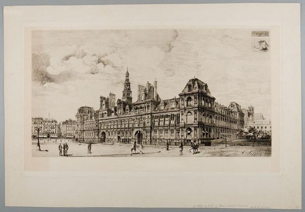Editor: This etching is titled "Waterloo Place, London" by Muirhead Bone, created in 1916. It's so detailed, capturing this imposing building undergoing construction, but it feels surprisingly delicate because of the medium. What stands out to you most about it? Curator: The image speaks volumes about power structures, doesn't it? An established, classically-inspired building—a seat of authority perhaps—is in the throes of being reshaped during the height of World War I. What does it mean to build and rebuild during such times? How is this moment of transition and (re)construction reflected across class, race and gender? Editor: That's a powerful point. I was focused on the architectural details, but I hadn't considered the wartime context. It makes me wonder who the workers are – what was their status during this time? Curator: Exactly! Consider how war economies relied on labor that was simultaneously hyper-visible and rendered invisible. Bone's detailed lines contrast against the blank sky, drawing our focus onto these themes of (in)visibility, reconstruction and historical progress. Whose progress was it really? How are we implicated when viewing such images? Editor: It’s interesting to think about how the artist chose to portray this particular scene. Curator: Absolutely. An artist's choices always reflect a particular ideological viewpoint. Was he questioning the notion of progress, or celebrating the strength of British institutions despite the war? It's not just about what is depicted but also *how* it's depicted that demands closer examination. Editor: I'm beginning to see the etching as less of a static depiction of a building and more as a statement, or maybe a question, about that period. Curator: Precisely! By looking at the work through multiple lenses—social, historical, and political—we begin to unravel layers of meaning and reveal not only the image but ourselves. Editor: Thank you, I see the print and that specific historical time in such a richer and complex light now! Curator: And understanding that historical time makes the print more resonant to our current socio-political conditions, I would argue.