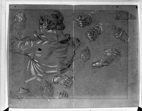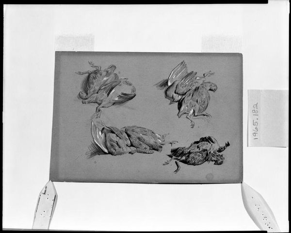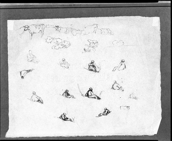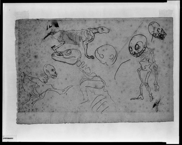 Editor: Here we have Delacroix’s "Six Sketches of a Panther's Head." It’s a simple sketch, just lines on paper, but you can feel the energy in those quick strokes. What do you see in this work? Curator: I see a fascination with the animal's form, undoubtedly. But more than that, consider the paper itself – its texture, its likely origins. Was it readily available, a mass-produced sheet? Or something more bespoke, reflecting Delacroix’s access and social standing? How does this paper affect our understanding of the work as a study, versus a finished piece? Editor: That's interesting, I hadn't thought about the paper itself being part of the story. Curator: Absolutely. And think about the labor involved. Delacroix’s hand, of course, but also the unseen hands that produced the materials he used. Every artwork is a product of its means of production. Editor: It’s a reminder that even a simple sketch has a complex history behind it.
