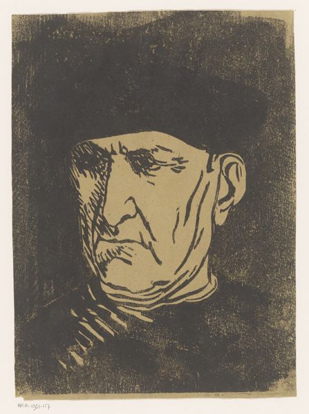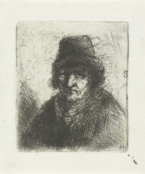 Curator: Up next, we have Wilhelm Leibl’s etching, "Portrait of an Old Peasant Woman, in Profile to the Right," created in 1874. It’s quite striking, wouldn’t you say? Editor: It absolutely is. Immediately, I’m drawn to the… I don’t know, the quiet dignity radiating from this woman. Her face, etched with the marks of time, tells such a compelling story. Curator: Leibl was very much a realist, focusing on portraying people without idealization. He often depicted rural life, and his portraits sought to capture the essence of the individual. I am fascinated with what realism mean to Leibl himself... Is this realisim based in direct observation? in a kind of raw representation of humanity in a post industrialised era? I have questions! Editor: Those lines that make up the shadows, the cap she's wearing—it's all carefully constructed with an almost relentless detail, but detail that adds to her character and status. The way she looks beyond us could almost be considered romantic... a sense of determination is so clearly visable in those etched lines and layers. Curator: There is something undeniably symbolic in those lines, isn’t there? The etched lines are so powerful in communicating meaning in our world of symbols, the symbols she holds, the wisdom, history, knowledge is all carried. This representation makes her an icon. Editor: I find myself wondering about the choice to render her in profile. Is it to protect her identity, in some sense? Or does it allow us to project our own interpretations more easily onto her, the woman in this rendering. I imagine people are represented every day that hold some symbolic value and knowledge... our elders who paved the way! It makes the representation of this one that more personal. Curator: Perhaps it is the simplification, stripping away distractions to focus solely on her strength and character, even... And those cross-hatched etched lines give it all texture, layers upon layers, each cut adding depth of her life experience and dignity. A tribute. Editor: That’s a lovely thought. It’s fascinating how Leibl's choice of medium enhances that feeling, making it simultaneously intimate and powerful, even from the distant perspective of time. In short: very beautiful! Curator: I totally agree, the dialogue we've created together through the work really does take us to interesting thoughts around how to interpret icons, history, and beauty from those perspectives.