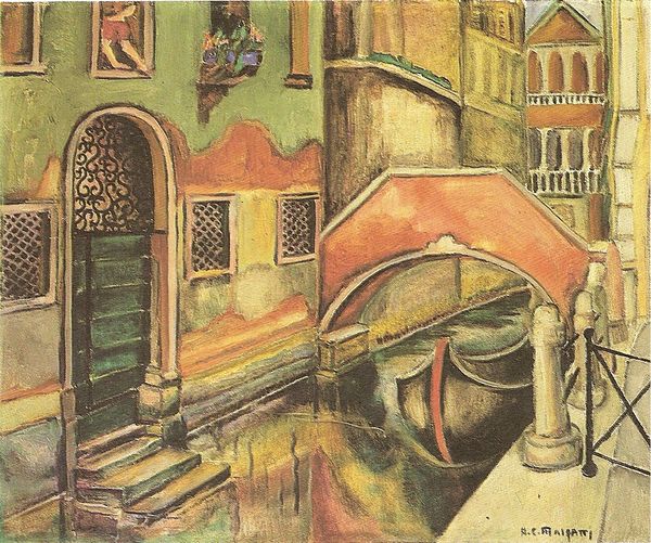 Micaela Eleutheriade painted this evocative scene of the Places des Vosges, most likely in oils. The fountain at the center, a symbol of life and renewal, anchors our gaze. The image of the fountain is deeply embedded in our cultural memory, from ancient Roman courtyards to Renaissance gardens. It is a testament to humanity's enduring relationship with water as a source of sustenance and aesthetic pleasure. Notice how the presence of the birds around the fountain enhance the tranquil atmosphere, and how the trees frame the classical architecture. The fountain, ever-flowing, invites contemplation on time and the ceaseless rhythm of nature. This symbol carries a powerful force, engaging viewers on a subconscious level, triggering our deepest associations with life and vitality. The fountain's image transcends time.