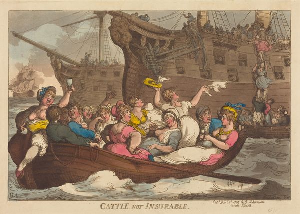 Thomas Rowlandson captured this vibrant scene of Portsmouth Point using pen and watercolor. A convergence of bodies unfolds before us, hinting at stories of departure and arrival, under the watchful gaze of ships that promise adventure and uncertainty. Note the tavern's prominent placement; it's a symbol as old as civilization itself, a liminal space promising respite. See how the overflowing balcony mirrors similar scenes in Dutch paintings of taverns, places where social norms are briefly suspended. This motif extends back to ancient Roman bacchanals, resonating with the primal human need for communal release. Consider the embrace—a gesture of farewell or greeting, a universal expression of human connection. Like figures on archaic Greek grave stelae, it speaks to a timeless emotional state, engaging viewers on a subconscious level, reminding us of our own attachments and losses. The tavern, the ships, the embrace - these are not merely depictions but symbols in perpetual motion, reappearing across centuries. It is a cyclical return, forever transformed by the shifting sands of time.