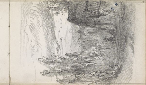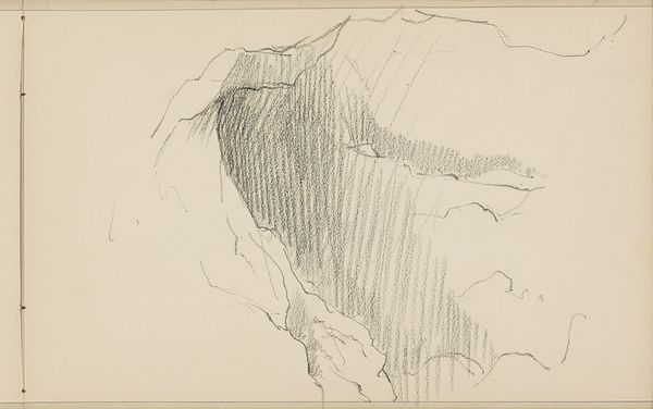 Editor: This is “Boomstam,” a graphite and pencil drawing, likely made between 1865 and 1913. It's a quick sketch, almost stark in its simplicity, yet the stark, shadowy forms create a looming, powerful presence. What do you see in this work, particularly as it might resonate with viewers of the period? Curator: What strikes me first is the raw, almost primal quality of the image. The stark representation evokes an enduring symbol of nature – the tree. This image becomes imbued with collective associations. Think about the tree as a symbol in various cultures: life, growth, wisdom, even death when we consider its fallen state. Hubrecht's “Boomstam” taps into that cultural memory. The stark lines against the light almost suggests the vulnerability or perhaps the endurance, of nature itself, which feels quite modern. Does the medium -- a simple drawing -- enhance or diminish these ideas? Editor: I think the simplicity amplifies it. There’s an immediacy, a direct connection to the subject without the mediation of color or detailed rendering. It feels almost like an archaeological record of an instant. Curator: Precisely. The artist uses such sparse lines to distill this presence of nature into its fundamental form. Consider the rings within a tree trunk, markers of time, each one a symbol of passing years, of continuity, of cultural memory passed from one era to the next. The unfinished quality, though, suggests this reflection is an ongoing process. A continuous loop from life to symbol. It feels almost dreamlike because of its enigmatic aura. Editor: I see it. That really reframes how I look at it – beyond just a drawing of a tree, it's like a meditation on time and nature's resilience, captured in a fleeting moment. Thank you. Curator: Indeed. These kinds of seemingly simple works can unlock rich cultural narratives if we attune ourselves to the visual symbols present. It becomes more than just a drawing, it becomes a vessel of cultural memory.
