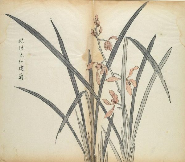 Curator: This delicate image of orchids comes from Hu Zhengyan's "Ten Bamboo Studio Manual of Calligraphy and Painting". Editor: It's so simple, almost stark, but the orchids feel so alive, like they're breathing right off the page. The texture of the paper, the ink...it's all so tactile. Curator: The orchids themselves have a long symbolic history in Chinese culture, often associated with refinement, elegance, and even reclusion. Editor: I see it. It’s a plant that hides away, growing wild, yet it holds such a subtle beauty. It's like a little secret, a moment of quiet contemplation. Curator: Absolutely, and in the context of the Ten Bamboo Studio, these images served as models, not just for botanical accuracy, but for capturing the spirit of the subject. Editor: Well, it certainly makes you want to pick up a brush and try to capture that spirit yourself. Curator: Indeed. It’s more than just a botanical illustration; it's an invitation. Editor: A beautiful, subtle invitation at that.