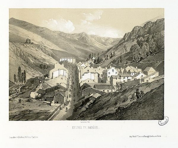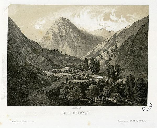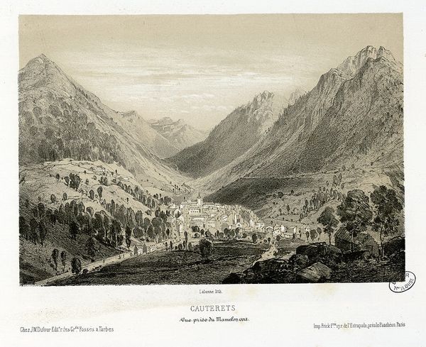 Maxime Lalanne made this print of Luz, likely in the mid-19th century, using etching or a similar intaglio process. Here, the artist depicts a specific location, but the image also reflects wider cultural trends. During the 1800s, there was a boom in landscape art in Europe alongside the development of tourism and the railway. Artists like Lalanne catered to a market of middle-class consumers eager to collect picturesque views of faraway places. Lalanne’s print capitalizes on this desire, depicting the town of Luz nestled in the Pyrenees Mountains. The dramatic peaks and valleys evoke the sublime, a popular aesthetic ideal at the time. However, the print also domesticates the scene, rendering it in a precise and detailed style accessible to a broad audience. By studying travel guides, exhibition records, and other printed matter, we can better understand the social function of images like this one in the 19th century.