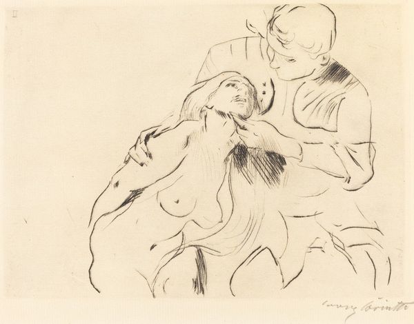 Curator: This pencil drawing, entitled "Kinderen in de schoolbank," or "Children at school desks," is attributed to Carel Adolph Lion Cachet, and thought to originate somewhere between 1874 and 1945. It is currently held at the Rijksmuseum. What are your initial impressions? Editor: The drawing's sketch-like quality, executed on toned paper, lends it a sense of intimacy and immediacy. The subject matter suggests a story, doesn't it? I feel the weight of the school system's expectations through their postures. Curator: Exactly. Looking closely, we can see Cachet's light pencil work creates a wonderful depth, given the spartan materials. Notice how he's captured the light reflecting on the children's heads, especially. We are dealing with simple pencil on paper, but it’s how he coaxes that tonal variation. Editor: I agree, the variation really gives life to the sketch. Considering the historical context, school for children was becoming more widely accessible, but simultaneously compulsory. Who did these new pedagogical practices include, and who did they exclude? Was the artist considering the labor being formed? Curator: That’s certainly one reading. I think too we can think of the education systems, particularly in the late 19th and early 20th century, as being a site of both labor and control. And we see this through other sketches too that explore industrial practices as well, connecting the children to these larger networks. Editor: That makes me consider it as a study of the dynamics between individuality and conformity, especially observing the small differences in how each child holds themselves, alongside the more blurred figures that resemble something closer to a crowd. It brings forth the many discussions within feminist pedagogy about who these institutions of learning are really meant to serve. Curator: A fascinating intersection! It’s intriguing how much information can be conveyed with such minimal means. The focus on the labor of education really pulls at a variety of perspectives. Editor: Agreed, it invites a continued questioning and deeper understanding, challenging our modern expectations and assumptions.