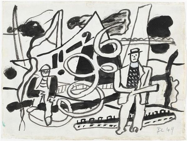 Fernand Léger made this study for the circus clowns using ink on paper. He's working here with materials that are about as basic as you can get. The stark black lines against the bare white paper, gives the artwork a raw, immediate feel. Léger was very interested in modern life, and he saw the circus as a place where traditional performance met the energy of the machine age. The way the ink sits on the paper, thick in some spots, thin in others, shows the artist's hand, but he's also pushing for a kind of mechanical simplicity. Léger’s choice of such simple materials really emphasizes the forms and the composition, reducing figures to their most essential shapes. He’s interested in how art can be both accessible and modern, reflecting the energy of the streets and the lives of everyday people. Ultimately, this piece challenges us to think about how materials and making shape not just what we see, but how we connect to the world around us, blurring the lines between high art and everyday experience.
