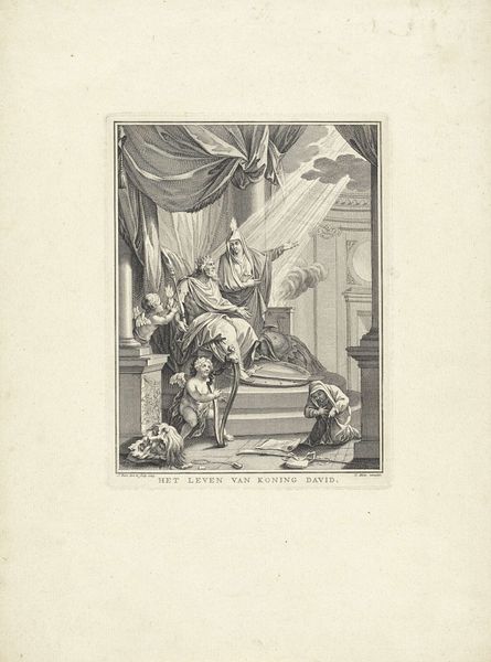 This vignette, etched by Adam Oehlenschläger, presents us with figures on a balcony, one gazing through a telescope, another with arm raised in what appears to be a hailing gesture. The telescope, a symbol of enlightenment and scientific progress, allows us to extend our vision and perhaps our understanding. Consider the recurring motif of figures on balconies throughout art history. In Renaissance paintings, balconies often frame important announcements or dramatic revelations. Think of the moment of recognition, the unveiling of truth. Here, the act of looking through a telescope echoes this desire for clarity, yet the raised arm suggests a more active engagement – a call to action. This motif, passed down through generations, evolves to reflect humanity's ever-changing relationship with knowledge and discovery. These gestures resonate on a primal level, tapping into our collective memory of seeking and striving. Observe how such expressions of anticipation invite viewers to participate, psychologically engaging with the image and, perhaps, reigniting that timeless, deep-seated curiosity. The human desire to understand is a force that transcends epochs.